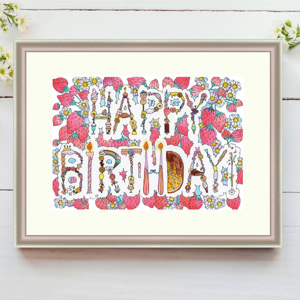 誕生日は、誰かが生まれてきてくれたことを祝う日。花や色に包まれた文字に、あたたかな想いを込めました。贈る人も贈られる人も、笑顔になれますように。